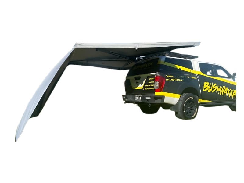 The BushwakkaExtreme Awning Single Wall Kit (2700mm) gradually widens towards the base and features a 50mm Velcro attachment designed to connect securely to the awning. The 50mm connection offers substantial strength, minimising the risk of detachment even in windy conditions.
